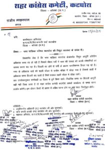 अतः उपरोक्तानुसार कार्यवाही 03 दिवस में पूर्ण किया जावें। निर्धारित समय पर बिजली आपूर्ति सही नहीं किया जाता है तो शहर कांग्रेस कामेटी कटघोरा आपके कार्यालय के समक्ष धरना प्रदर्शन करेंगी। इस दौरान किसी भी प्रकार से अप्रिय घटना होने पर आप स्वतः जिम्मेदार होगें।