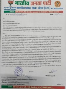 कोरबा// छ.ग. के मुख्यमंत्री विष्णु देव साय को…भाजपा जिला सह संयोजक मो. न्याज नूर आरबी ने कार्यवाही हेतु लिखा पत्र…सौंपा जिला कलेक्टर को