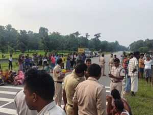 परिजनों वह गांव वालों ने नेशनल हाईवे बिलासपुर कटघोरा मुख्य मार्ग सड़क को जाम कर दिया उचित मुहावरे को लेकर प्रशासन व पुलिस बात करने का प्रयास किया किया गया। तहसीलदार द्वारा 25 हजार तत्काल सहायता राशि के लिए परिजनों व आक्रोशित लोगों को 3 घंटे सड़क पर प्रदर्शन करना पड़ा। नेशनल हाईवे में चक्काजाम से तीनों सड़कों पर भारी वाहनों की लंबी कतारें लग गई।