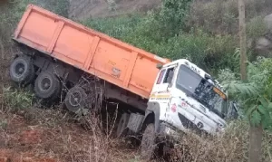 कुसमुंडा के लक्ष्मण नाले के पास एक सड़क हादसा हुआ है,जहां एक खाली ट्रक सड़क से उतरकर नाले में जा गिरा। हादसे का सुखद पहलु यह रहा,कि ट्रक सड़क के दांयी और नहीं पलटा नहीं तो कई कच्चे और पक्के मकान उसकी चपेट में आ सकते थे।