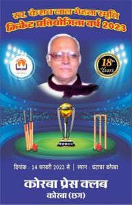 कोरबा :- 14 फरवरी से स्व. K.L मेहता क्रिकेट प्रतियोगिता का आगाज घंटाघर में….