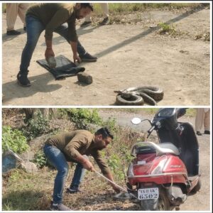 कोरबा-DSPM प्लांट में तैनात महिला सैनिक के स्कूटी के निचे बैठा था विशाल काय अजगर, गुस्से से अजगर कर रहा था लगातार हमला जितेंद्र सारथी ने किया रेस्क्यू