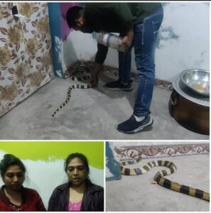 घर में जहां मातम के माहौल था, वहीं घर पहुंचे मेहमानों के बिच जहरीले सांप को देख घर वालों की हुए हालत ख़राब,आधी रात घर पहोंच कर जितेंद्र सारथी ने किया रेस्क्यू।