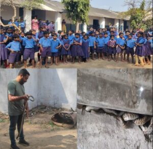 कोरबा जिले को सांपो के लिए जाना जाता हैं, मौसम के बदलते ही फिर से अब साप दिखने लगे हैं ऐसा ही साप निकलने की घटना जिले के जे पी कॉलोनी के मिडिल स्कूल में देखने को मिला दोपहर के समय स्कूल के शौचलय में एक किनारे विशाल साप देख कर शौचालय गए कुछ बच्चें भाग खड़े हुए जिसके बाद बच्चों ने साप दिखने की जानकारी स्कूल के शिक्षको को दिया जिसके फौरन बाद बच्चों की सुरक्षा को ध्यान में रखते हुए बिना देरी किए इसकी जानकारी वाइल्डलाइफ रेस्क्यू टीम प्रमुख जितेंद्र सारथी को दिया जिस पर सारथी ने थोड़ी देर में पहुंचने की बात कहीं और बच्चों के शौचालय प्रवेश कर रोक लगाने को कहा फिर थोड़ी देर बाद स्कूल में पहोंच कर शौचालय में बैठे 7 फिट लंबे धमना साप को सुरक्षित रेस्क्यू किया गया और बच्चों को सांप के विषय में बताया गया की यह धमना साप हैं जो की जहरीला नहीं और साप हमारे पर्यावरण संतुलन के लिए बहुत ज़रूरी हैं।